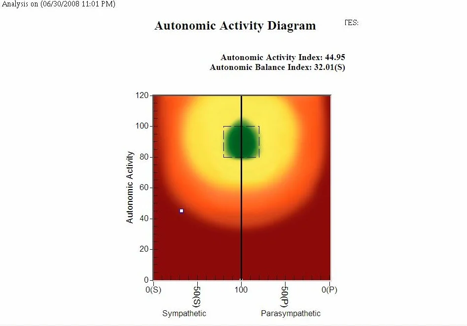 Simply put, HRV is a representation of the balance existing between the Sympathetic(S) and Parasympathetic (PS) portions of the ANS. If there is increased regularity of the heartbeat there is decreased variability and vice versa. The heart rate is measured using ECG’s or pulse wave profiles (plethysmograms). Increased S-tone relates to decreased variability. Increased PS-tone increases variability. An increase in variability is synonymous with the increased adaptability to environmental stimuli (less overall stress). A decrease in variability has been linked to any number of deteriorating physiologic states. HRV is not an exact diagnosis of disease but rather an indicator of the present state of adaptability.